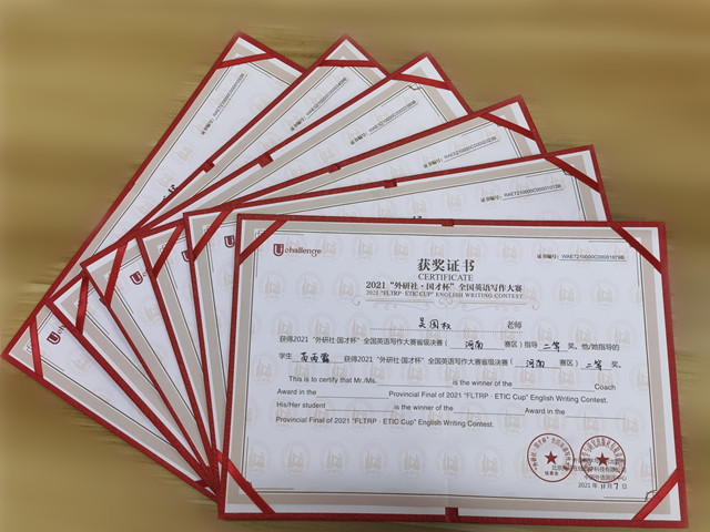 在近期举办的2020“外研社”杯全国英语演讲、写作、阅读大赛河南赛区复赛中,我校选手获得优异成绩。在参赛的11名选手中,有6名同学获得二等奖,5名同学获得三等奖。