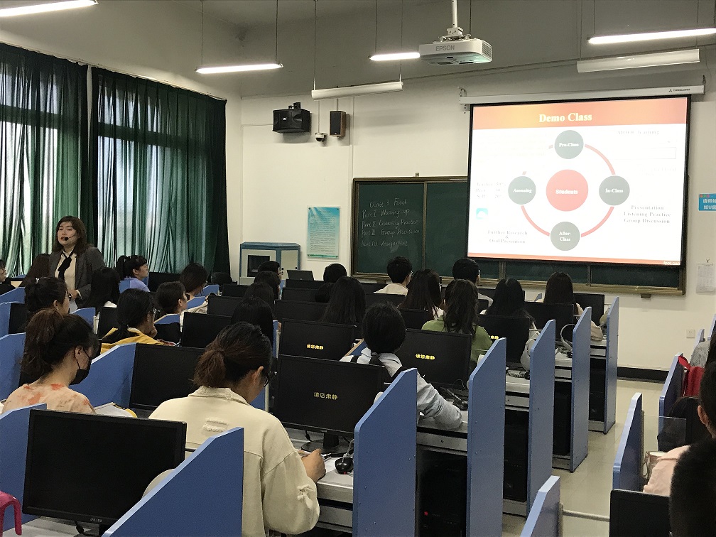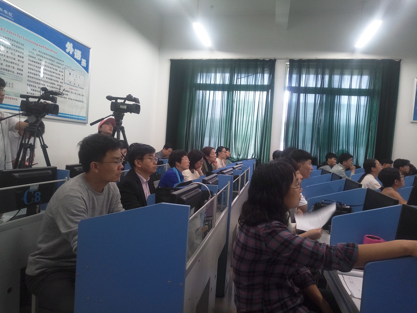根据学校第三届本科课堂教学观摩活动通知要求和ok138cn太阳集团古天乐安排部署,大学英语教研一室于5月10日上午10点在龙子湖校区一号教学楼521语音室开展了示范型教学观摩活动。观摩课由李燚老师主讲,校教学质量监控与评估办公室李海舰处长、ok138cn太阳集团古天乐院长陈延潼、副院长许海兰,校级教学督导张静、刘喜芳、贾遂芝及课程组部分教师参与了听课。