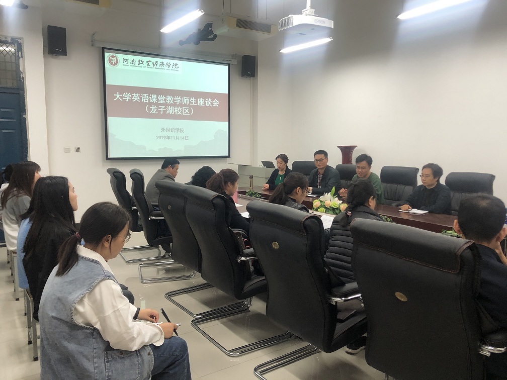 为进一步加强教学管理,及时发现和解决教学中存在的问题,根据学校期中教学检查的要求,结合我院期中教学检查安排意见,ok138cn太阳集团古天乐于11月14日中午分别在龙子湖、英才、北林三校区召开公共英语本、专科师生座谈会。座谈会由大学英语教研一室主任吴国权、大学英语教研二室主任左红霞、实用英语教研室主任王伟、实用英语教研室教师宫桂梅、后续课程教研室教师康大伟分别主持,学院领导分头参加了座谈会。