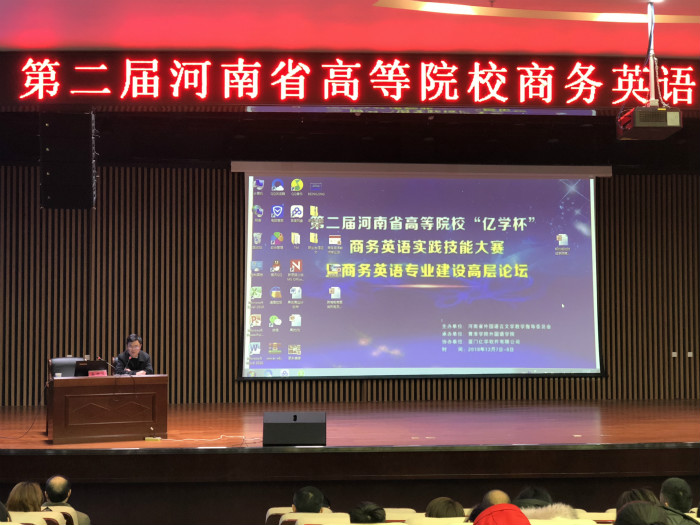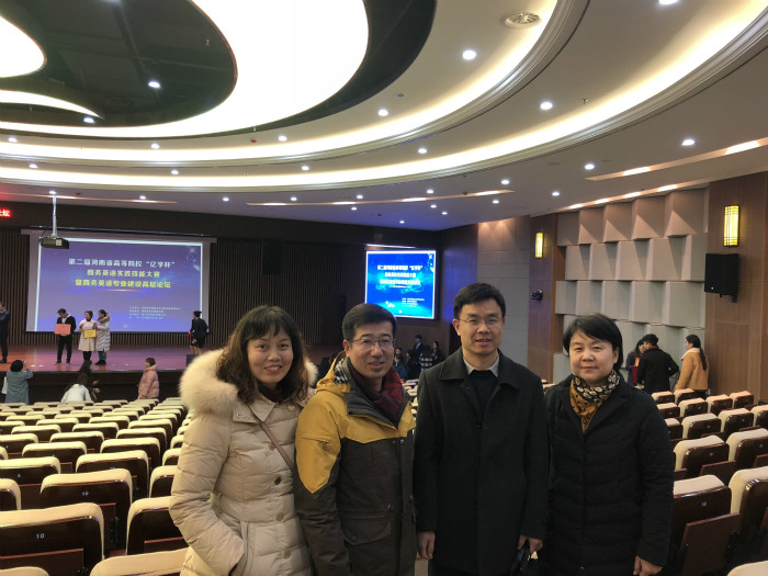 由河南省外国语言文学教学指导委员会主办,黄淮学院承办的第二届河南高等院校“亿学杯”商务英语实践技能大赛暨商务英语专业建设高层论坛于12月8日举办,我校ok138cn太阳集团古天乐院长陈延潼、教研室主任温晶晶、张明梅、闻华应邀参加。