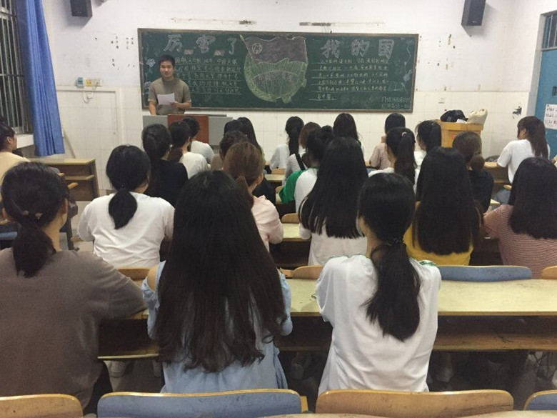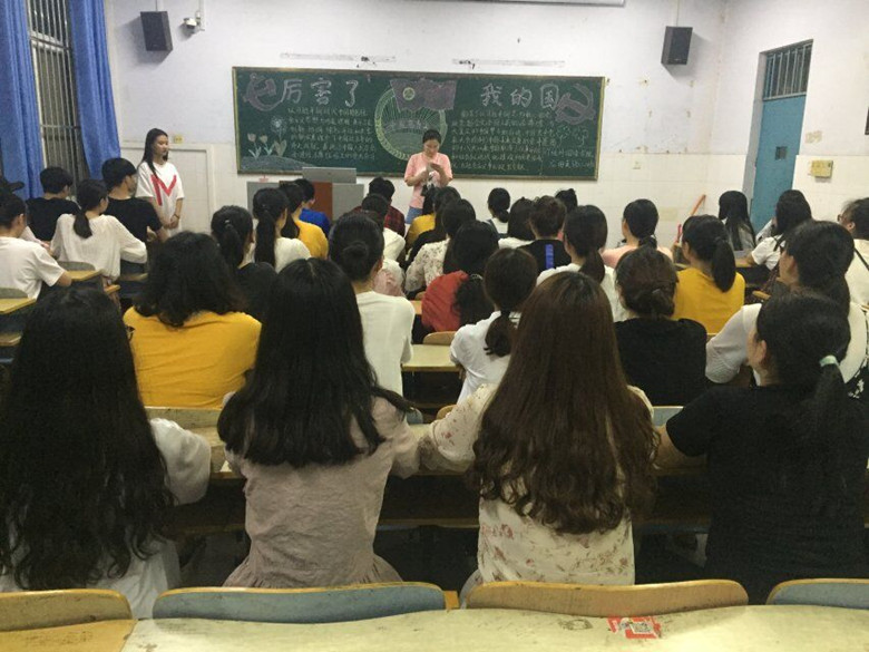 团课伊始,各班首先观看了《厉害了,我的国》纪录片片段。影片讲述了中国在一个个超级工程中和高新技术领域所取得的非凡成就,同学们全神贯注,凝神观看,为今日中国的蓬勃发展、繁荣复兴而感叹。观影结束后,商英一班的朱红姿同学深情演唱了一首《歌唱祖国》,将对祖国的热爱和崇敬之情都融于一首赞歌中。旅英二班的417宿舍带来诗朗诵《我爱大中华》,在诗歌的韵律中,同学们的心也随之跌宕起伏,尽诉一腔爱国之情,大家谈感受、谈作为。
