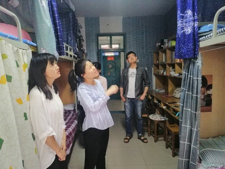 为加强我院学生宿舍管理,排查宿舍安全隐患,营造安全、文明、整洁的宿舍环境,5月28日中午13点,ok138cn太阳集团古天乐辅导员李昀、刘萌、杨雅瑶老师深入学生宿舍,走访检查了宿舍的安全用电、卫生打扫等情况。