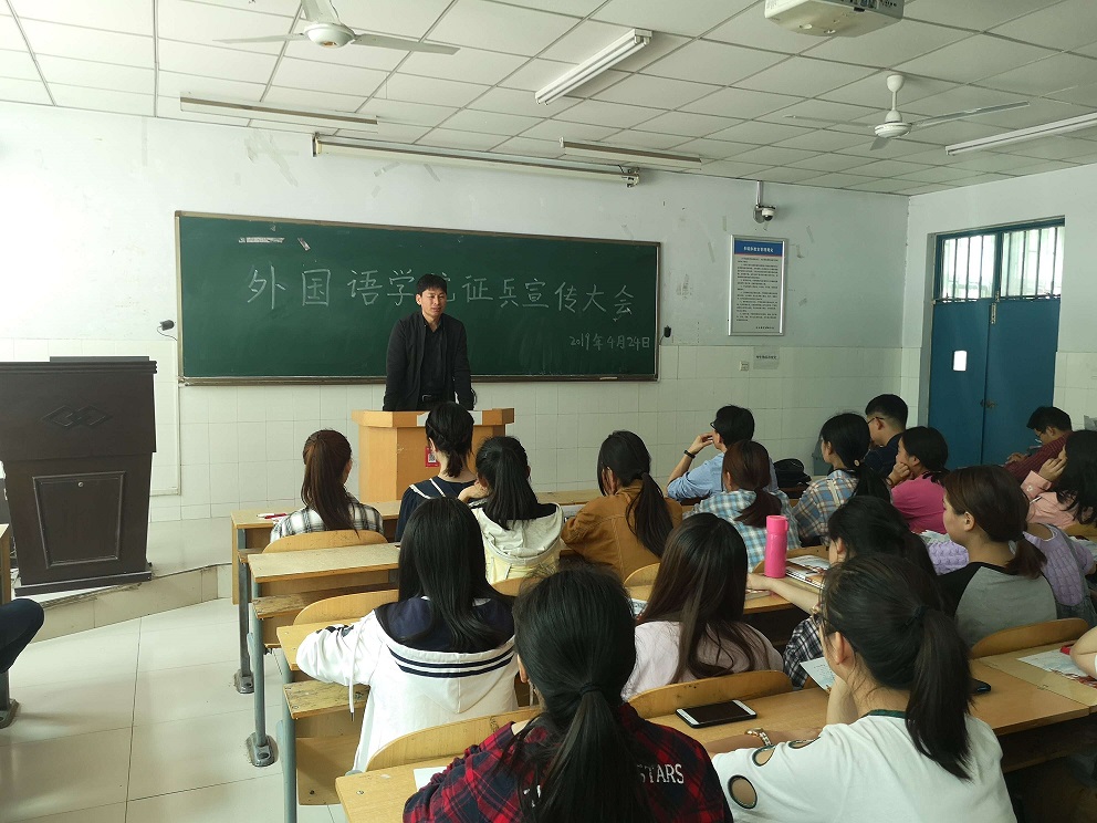“报国自古英雄事”,踊跃报名参军是每一名有志青年的光荣选择。4月24日中午13点,ok138cn太阳集团古天乐在W103召开2019年征兵宣传动员大会,会议由院武装专员李昀主持。院党总支副书记陈东景及各班辅导员出席会议,院全体男生及具有参军意愿的女生参加会议。