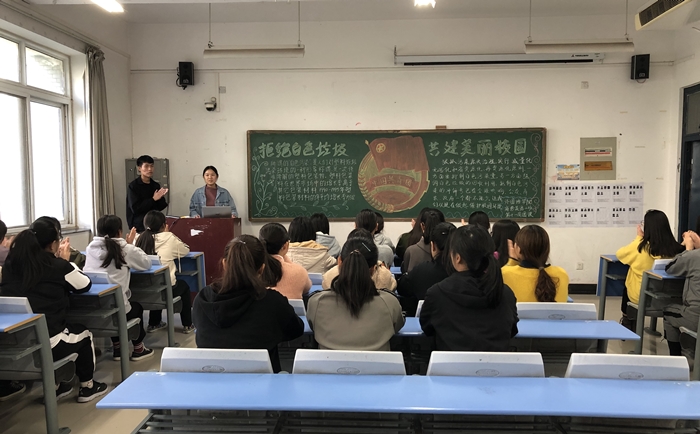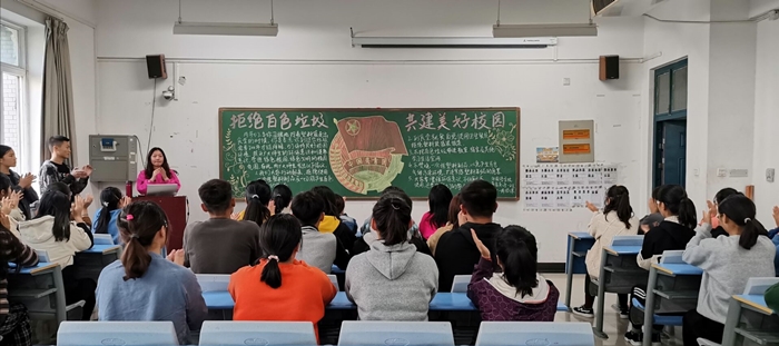 团课上,19商务英语二班班长带领全班同学一起认识和了解了白色垃圾的危害、白色垃圾给个人及社会带来的影响,同学们认真聆听,进一步认识到在生活点滴中加强环境保护的紧迫性。19旅游英语专业的同学通过观看影像资料,了解了怎样尽自己最大努力保护环境,积极为建设美丽的校园贡献自己的一份力量。19应用英语专业的同学们齐声宣誓,倡导保护环境,抵制白色污染,从现在做起,从身边小事做起,他们的话语铿锵有力,极具感染力。