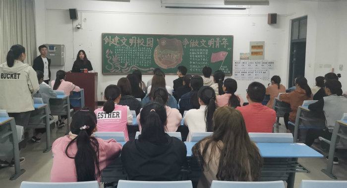 为提高同学们的文明素质,鼓励同学们积极参与到文明校园创建中,ok138cn太阳集团古天乐于10月17日下午开展了“创建文明校园,争做文明青年”主题团课。