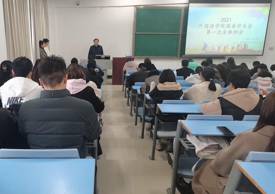 大会在庄严的国歌声中拉开序幕,院党委书记王明栓强调同学们要积极参与党史学习教育,做到“知党史、听党话、跟党走”,在学校迎接本科评估工作中身先示范、主动担当作为,用实际行动献礼建党百年。同时他对同学们提出三点要求:第一,提高素质,增长才干,摆正态度,树立正确的干部观;第二,要统筹安排好学习与工作的关系,将学生活动与专业学习紧密结合,做到两兼顾、两促进、双提高;第三,提升服务意识,做同学们的知心人,增强集体的向心力。