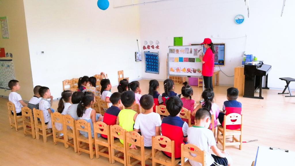 针对中班的小朋友,志愿者们教他们一些关于动物、水果的单词,利用事先准备好的图片,通过丰富有趣的肢体语言和面部表情,志愿者们成功地吸引了小朋友的注意力,一节课的时间孩子们聚精会神,认真跟着志愿者朗读单词,小手跟着比划,教学效果良好。面对年龄稍微大一点的大班同学,志愿者们教他们一些日常的英语短句,通过表演的方式让同学们记住每个句子的用法。
