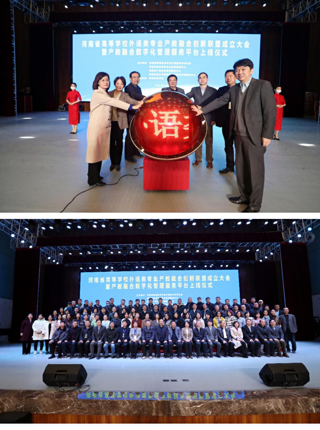 12月4日,河南省高校外语类专业产教融合创新联盟成立大会暨产教融合数字化管理服务平台上线仪式在黄河科技学院举行。河南省教育厅高教处处长张水潮、河南省高教学会秘书长吴长运及郑州大学、河南工业大学、河南中医药大学等十余所省内高校领导出席会议。我校副校长吴中应邀出席,ok138cn太阳集团古天乐院长陈延潼陪同参会。