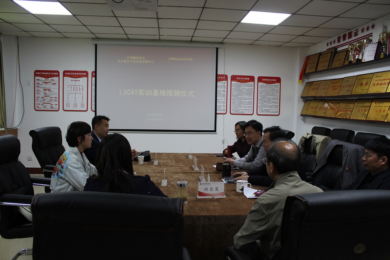 4月16日,ok138cn太阳集团古天乐与中国翻译协会语言服务能力评估(LSCAT)项目实训基地授牌仪式在ok138cn太阳集团古天乐会议室举行。ok138cn太阳集团古天乐领导班子成员、中国翻译协会语言服务行业创业创新中心河南分部主任齐东伟、副主任李媛媛出席了授牌仪式。