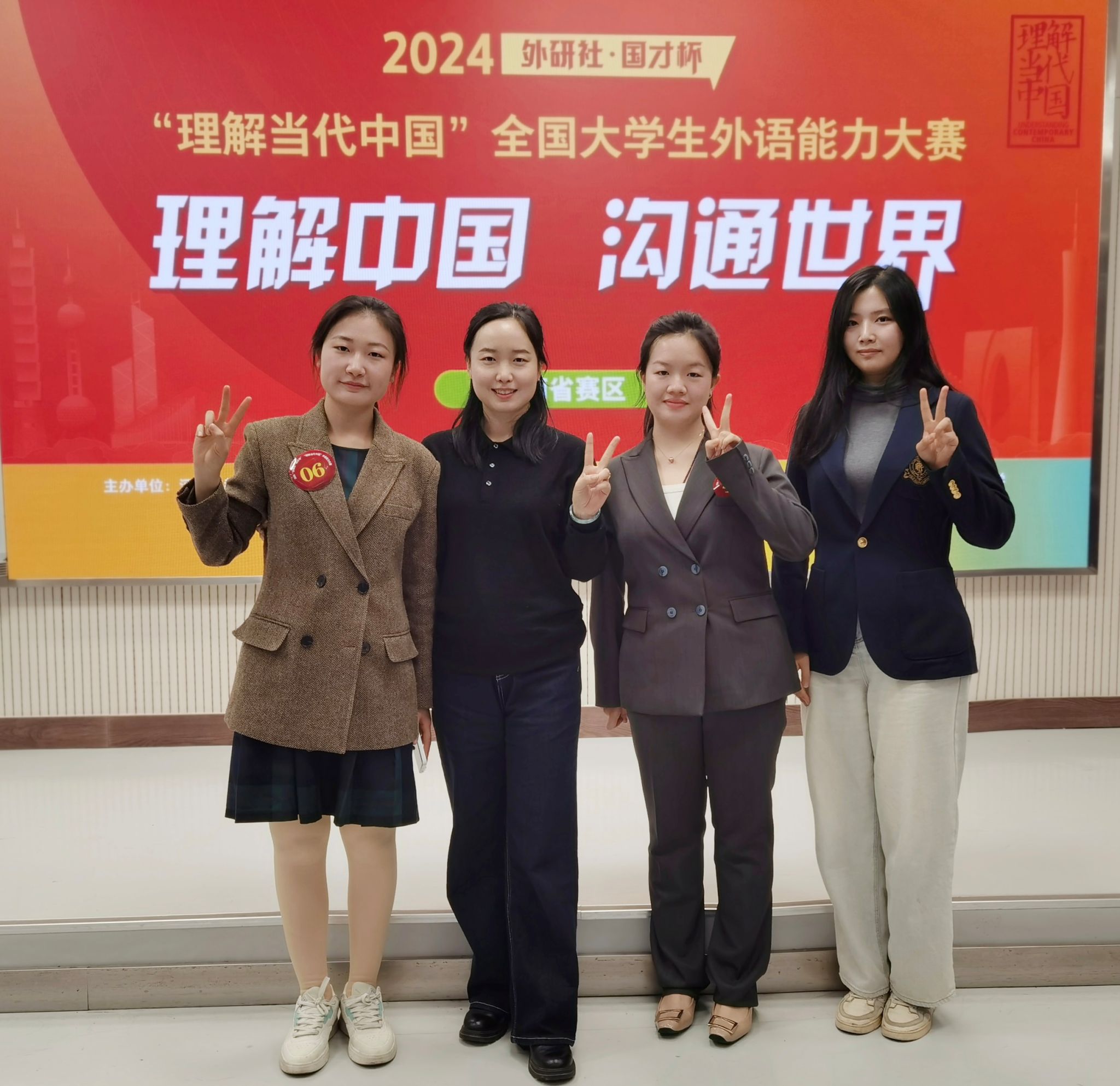 复赛中,我校选手在定题演讲和问题回答中表现优异,脱颖而出,顺利进入决赛,在决赛阶段面对激烈的竞争,两位选手沉着应对,充分展现自身综合实力,顺利完成即兴演讲和问题回答,取得优异的成绩。