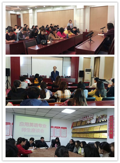 为进一步加强教学管理,及时发现和解决教学中存在的问题,根据学校期中教学检查的要求,结合我院期中教学检查安排意见,ok138cn太阳集团古天乐于4月25日、26日中午分别在英才、北林、龙子湖三校区召开专业英语师生座谈会以及公共英语本、专科师生座谈会。座谈会由各教研室主任主持,学院领导分头参加了座谈会。