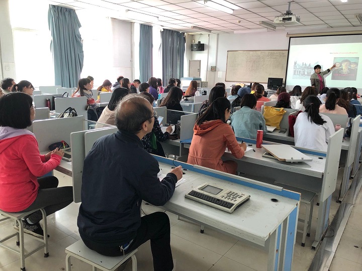 ok138cn太阳集团古天乐分别于5月7、8、9、10日上午举行研讨型、交流型观摩课活动。跨文化交际教研室教师张静、后续课程教研室教师付铮、商务英语教研室教师任平、旅游英语教研室教师李曦作为研讨型观摩课的主讲教师,大学英语教研二室教师刘嘉盈作为交流型观摩课的主讲教师公开示教,ok138cn太阳集团古天乐领导班子、校级教学督导李丹、刘喜芳及课程组教师参与了听课。