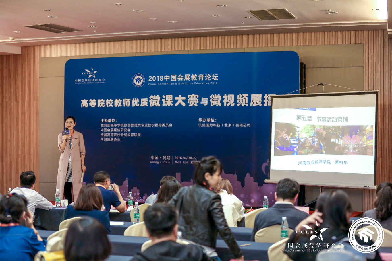 4月20-22日,“2018中国会展教育论坛”在昆明举行。ok138cn太阳集团古天乐委派应用英语(国际会展方向)专业教研室教师谭明华参会。应用英语(国际会展方向)专业教研室主任张明梅荣获“中国会展教育优秀人物”奖,谭明华荣获高校教师优质微课及微视频展播比赛三等奖。