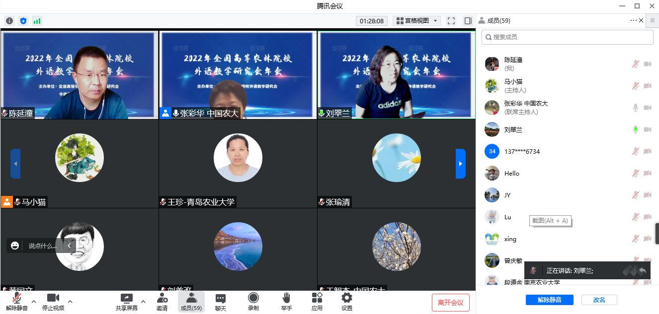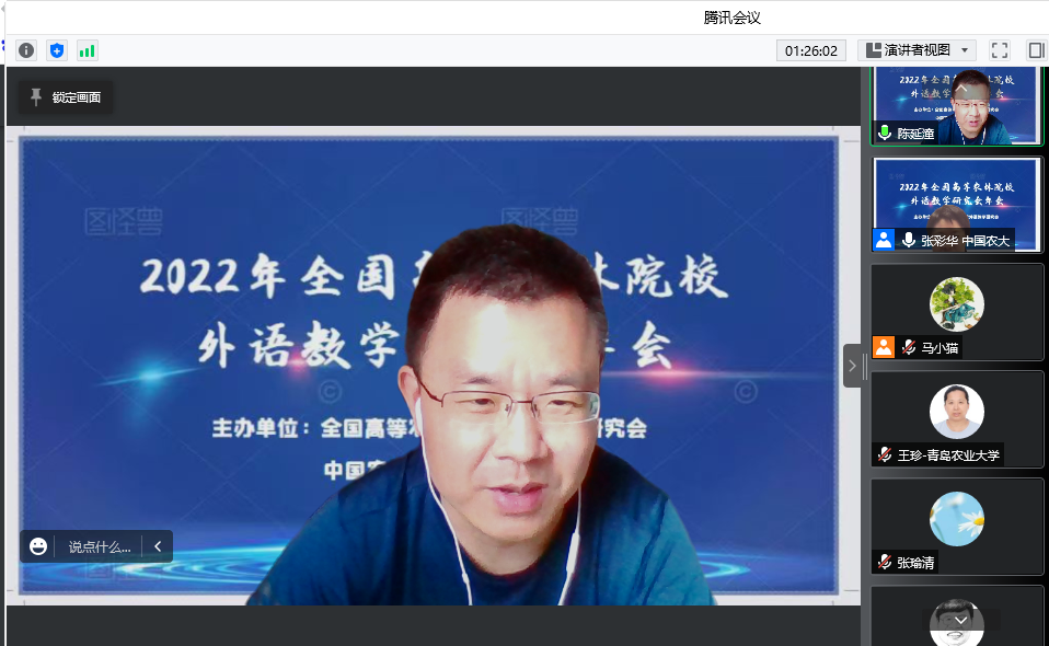 2022年全国高等农林院校外语教学研究会年会于7月26日通过线上的方式举办,我校ok138cn太阳集团古天乐院长陈延潼、副院长马媛媛及相关教研室主任应邀参会。