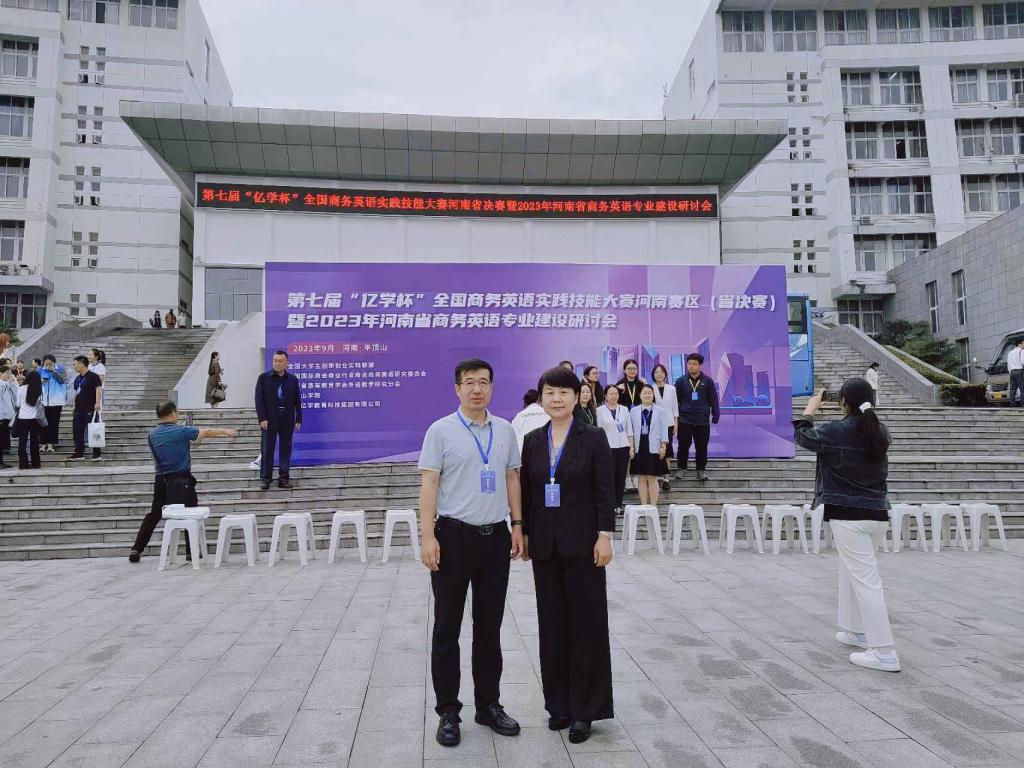 为深入贯彻落实立德树人根本任务,构建卓越的双师型师资队伍,更好适应时代发展和人才培养质量提升的需求,推动专业建设迈上新台阶,2023年9月22 日至24 日,ok138cn太阳集团古天乐副院长闻华和商务英语教研室主任张明梅参加了在平顶山学院举办的第七届“亿学杯”全国商务英语实践技能大赛河南省决赛暨2023 年河南省商务英语专业建设研讨会。