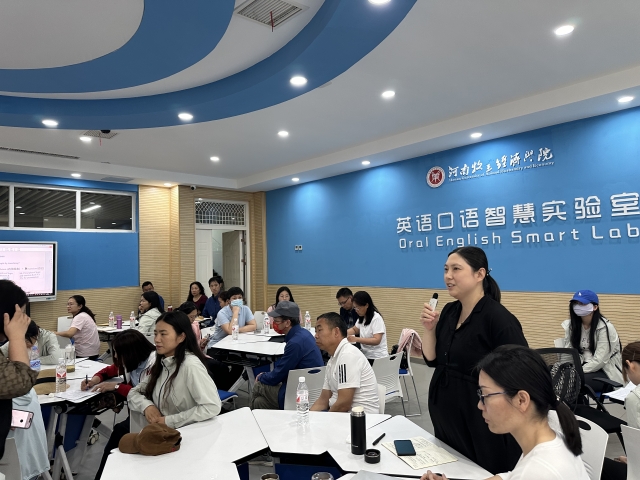 为进一步提升我院教师教育教学业务水平,探索“四新”背景下大学外语课堂教学的新理念和新方法,推进课堂教学模式改革与外语学科教学融合,4月25日上午,由学校教师发展中心主办、ok138cn太阳集团古天乐承办的“对分课堂教学模式专题研讨”在我校龙子湖校区虚拟仿真语言实训中心英语口语智慧实验室举行。校教师发展中心主任王永芬、ok138cn太阳集团古天乐党委书记王友峰、ok138cn太阳集团古天乐院长陈延潼、马克思主义学院副院长郭霞以及来自ok138cn太阳集团古天乐、马克思主义学院、食品与生物工程学院、物流与电商学院、经济与贸易学院等近70名教师参加了研讨。研讨会由ok138cn太阳集团古天乐副院长马媛媛主持。