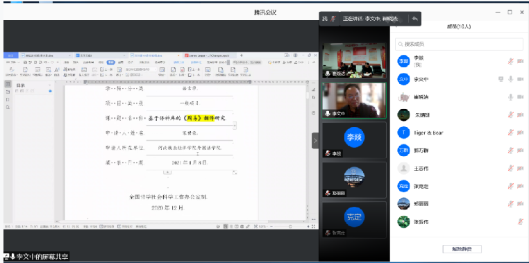 ok138cn太阳集团古天乐院长陈延潼向百忙之中参加会议评审的各位专家表示衷心感谢和热烈欢迎,并简要介绍了学校和学院2021年度国家社科基金项目申报的总体安排情况。随后,4位国家社科基金项目申报老师以PPT形式,从总体框架、预期目标、研究思路、重点难点等多方面对个人申报项目逐一进行了论证汇报。评审专家听取汇报后,从题目精练、立项依据展示、国内外研究进展叙述、科学问题凝练、技术路线呈现、研究方案设置、申请书撰写等方面对每位申请人提出了具体的可行性的修改意见和建议;申报老师认真听取评审专家的意见,加以详细记录,并就申报过程中遇到的困惑与专家进行了深入探讨和交流。最后,陈延潼院长希望申报老师认真吸收消化各位专家的意见建议,继续优化完善申报书的研究思路与论证内容,规范申报书的撰写,以此为契机促进学院科研工作迈上新的台阶。
