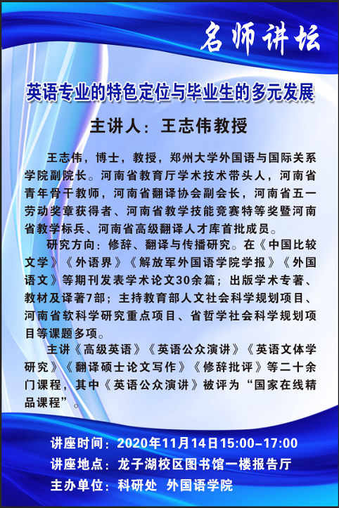 上一条:讲好中国故事 培养“外语+”人才——郑州大学王志伟教授应邀来我校讲学