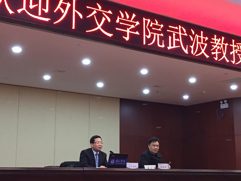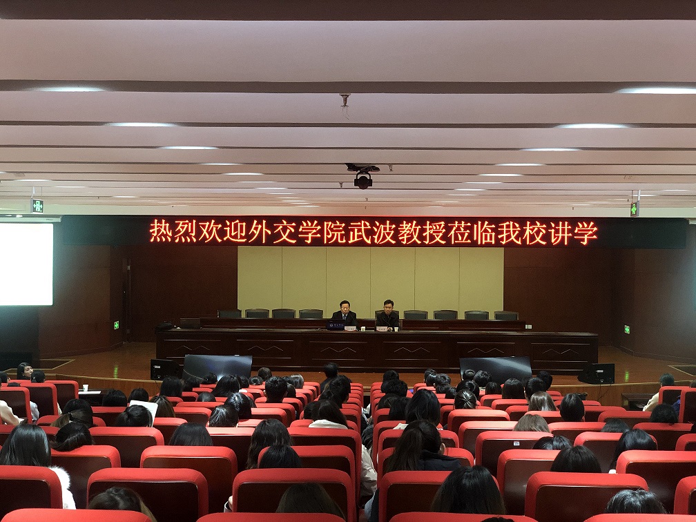 11月26日下午,应ok138cn太阳集团古天乐的邀请,外交学院武波教授到我校作题为“翻译中国——内容、原则及方法”的讲座。ok138cn太阳集团古天乐院长陈延潼主持讲座,ok138cn太阳集团古天乐300余名师生在龙子湖校区图书馆报告厅共同聆听了讲座。