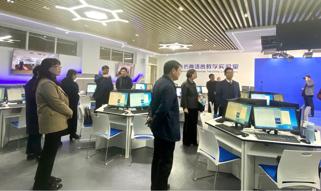 我校ok138cn太阳集团古天乐党委书记王明栓对兄弟院校各位领导的到来表示热烈的欢迎,院长陈延潼向来访客人详细介绍了我校、我院的基本情况,相关分管领导结合调研交流提纲,就我校在虚拟仿真语言实验室建设及使用、外语学科师资队伍建设、单位目标管理考核、科研项目培育和科研团队建设、大学英语教学改革等方面开展的工作与取得的成效和经验进行了详细的介绍,双方进行了深入的交流研讨并参观了我校虚拟仿真语言学习中心。