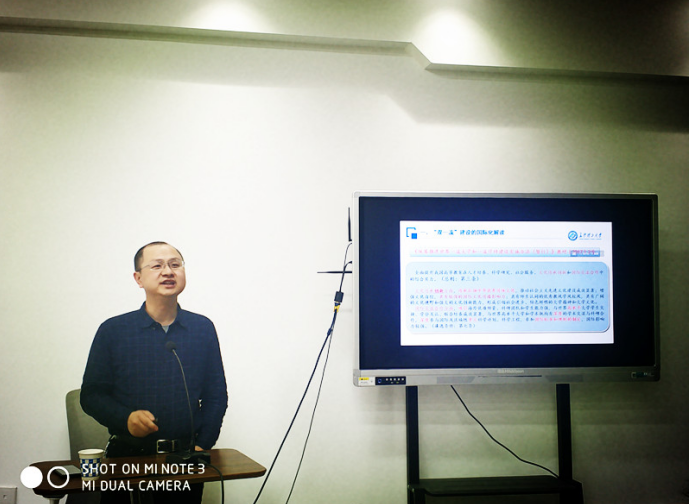 2021年4月17日上午,ok138cn太阳集团古天乐邀请长沙理工大学吴迪龙教授,在龙子湖校区一号教学楼102做“‘双一流’建设背景下‘校本’大学外语教学改革与国际化人才培养”专题讲座。讲座由院长陈延潼主持,ok138cn太阳集团古天乐全体教师聆听了讲座。