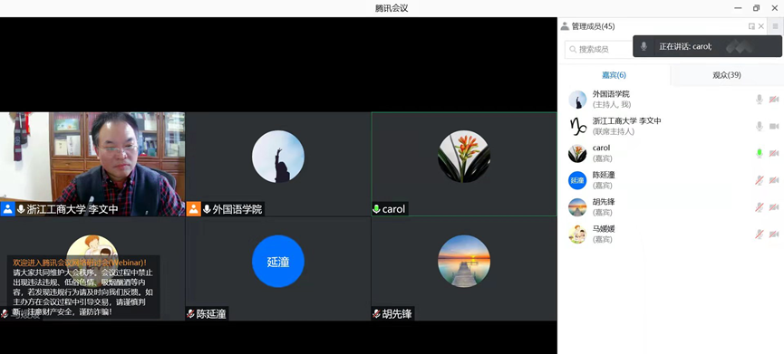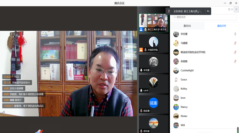 为增强我校国家社科基金申报的组织和指导,同时提高外语类教师国家社科基金项目申报书的质量,2022年1月8日上午,ok138cn太阳集团古天乐邀请浙江工商大学李文中教授,在线上做题为《国家社科基金外语类项目申报专题辅导讲座——申报者与评审者视角》的专题报告。ok138cn太阳集团古天乐党委书记胡先锋,院长陈延潼,副院长许海兰、马媛媛、巩坚出席了讲座,ok138cn太阳集团古天乐全体教师聆听了报告。讲座由副院长许海兰主持。