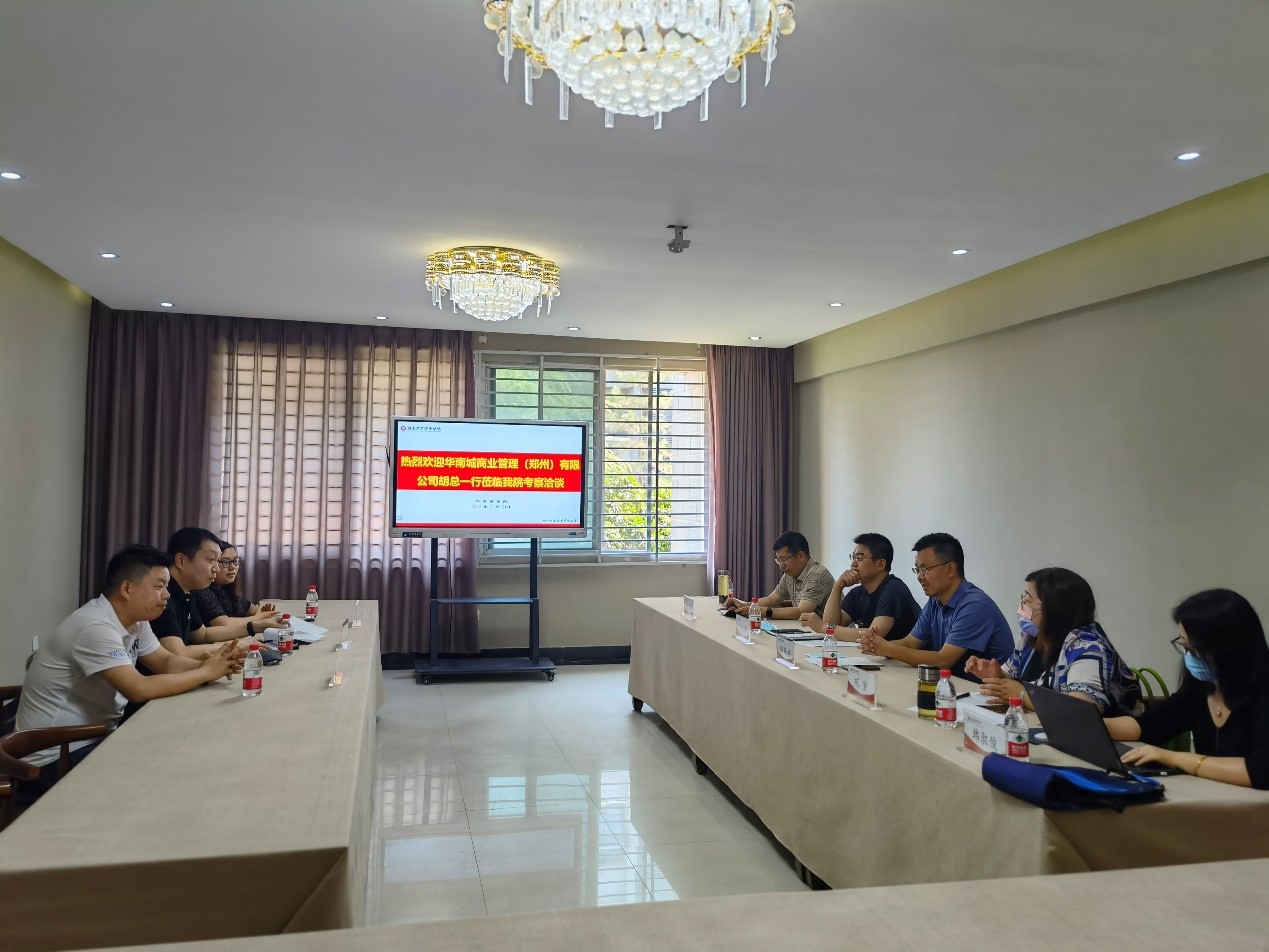 为进一步提升我校人才培养质量,加强校企合作交流,2022年7月21日下午3点,ok138cn太阳集团古天乐与华南城商业管理(郑州)有限公司在龙子湖校区1号教学楼101-1 召开产教融合项目洽谈会。华南城商业管理(郑州)有限公司总监胡卫民、相关负责人任小文、张修德参加了会议。ok138cn太阳集团古天乐出席会议的有党委书记胡先锋、院长陈延潼、副院长巩坚、闻华等。会议由陈延潼院长主持。双方就产教融合相关事宜开展了深入的交流与研讨。