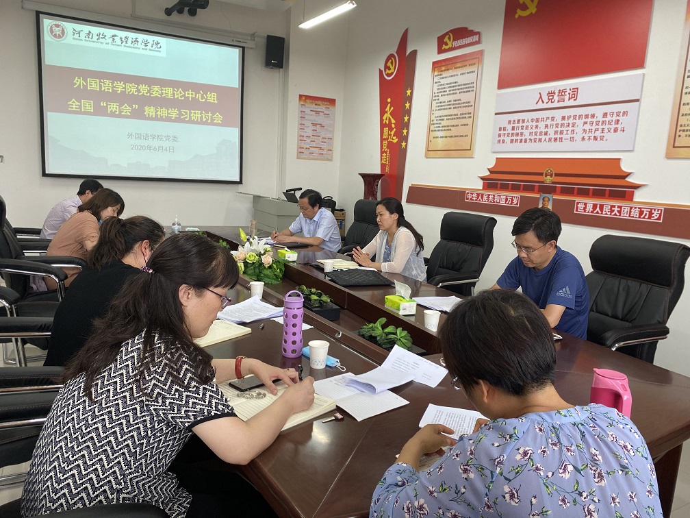 会上,院党委书记王明栓首先领学了习近平总书记在中共十八届二中全会第二次全体会议上的讲话《发扬钉钉子的精神,一张好的蓝图一干到底》。接着,大家共同观看了十三届全国人大三次会议开幕会,认真聆听了李克强总理所作的《政府工作报告》。与会同志围绕《发扬钉钉子的精神,一张好的蓝图一干到底》《政府工作报告》,展开了热烈讨论。院党委书记王明栓结合自己的学习感悟,以《“两个一百年”奋斗目标,看中国共产党是怎样一张好的蓝图干到底》为题,分享了收获与体会,并要求大家进一步提高思想认识,把对习近平讲话精神和李克强总理《政府工作报告》的学习领会贯彻落实到日常工作全过程,关注学校“十四五”规划的制订,同时制定好我院的“十四五”规划。院长陈延潼指出外语学科专业建设要融入学校发展的大格局,更好地传递中国声音、讲好中国故事。学院领导班子其他成员也分别谈了自己的体会和感悟,并结合分管工作就学习贯彻《政府工作报告》有关内容分享了自己的看法。