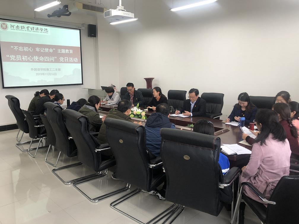 为深入推进“不忘初心、牢记使命”主题教育,引导广大党员在实际工作中使命在肩、主动作为,11月16日上午,ok138cn太阳集团古天乐各党支部开展了“初心使命四问”主题党日活动。副校长杨志清以及学院党委领导班子成员以普通党员身份参加所在支部活动。