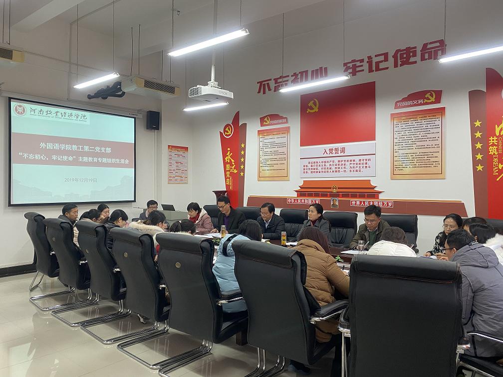 按照学校《关于召开主题教育专题组织生活会和开展民主评议党员的通知》要求,ok138cn太阳集团古天乐教工第二党支部于12月19日下午在学院党员活动室召开了“不忘初心、牢记使命”主题教育专题组织生活会。副校长杨志清、院党委书记王明栓、院长陈延潼等以普通党员身份参加了会议。会议由支部书记吴国权主持。