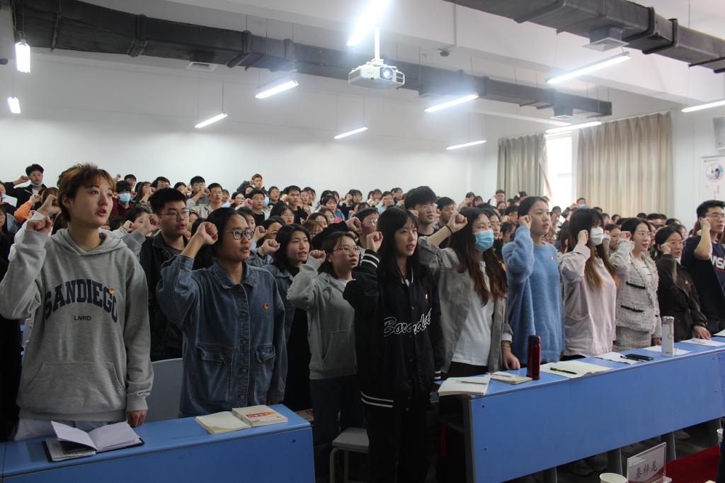 为以更加饱满的精神状态迎接迎接本科教学工作合格评估,进一步调动同学们的学习和工作热情,4月15日中午1点,ok138cn太阳集团古天乐在一号教学楼303召开迎接本科教学工作合格评估学生党员誓师大会暨学生党员、学生干部“亮身份、做表率、带头学”动员大会。ok138cn太阳集团古天乐党委书记王明栓、党委副书记李燚、团委副书记(学工办副主任)刘萌、全体辅导员及学生党员、学生干部、入党积极分子参加会议。会议由团委副书记(学工办副主任)刘萌主持。