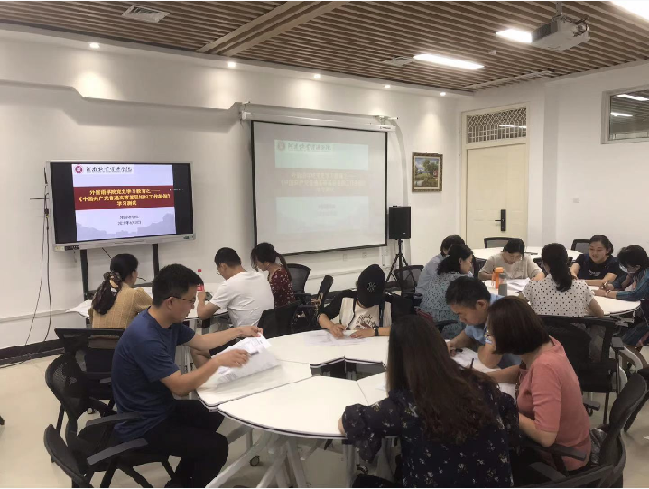 6月3日,根据上周党日专题学习的具体内容,ok138cn太阳集团古天乐全体党员又进行了《中国共产党普通高等学校基层组织工作条例》党员应知应会知识测试,通过测试进一步加强和巩固了教工党员对相关条例的理解。知识测试后,全体党员分支部进行了学习心得的交流。全体教工党员纷纷表示要加强学习,立足本职学、融会贯通学,要把理论学习和工作实践结合起来,与解决复杂问题结合起来,实现党建和业务工作的全面融合,相互促进,推进外语学院工作更上新的台阶。