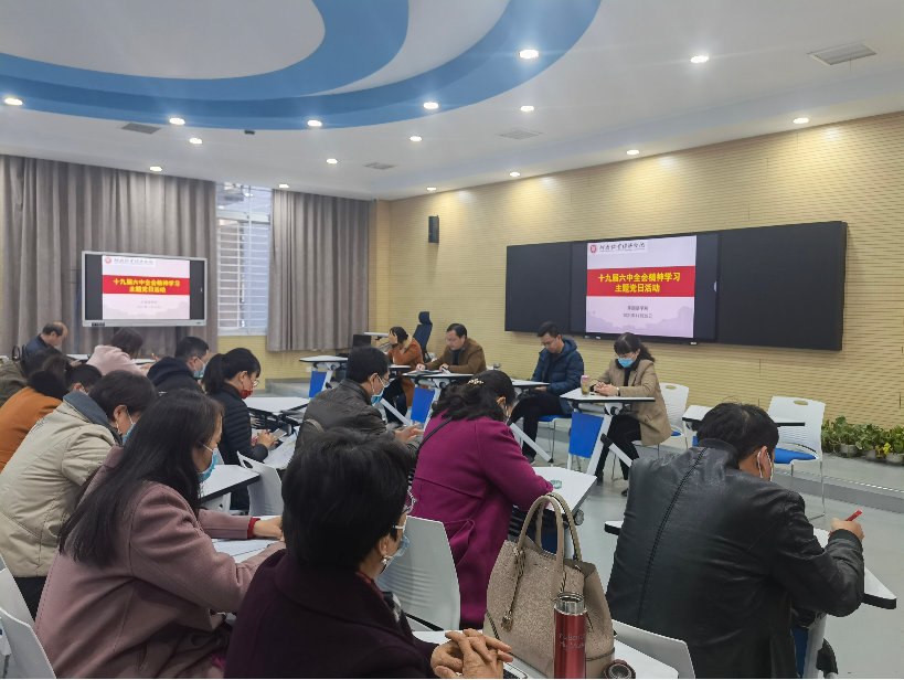 11月25日,ok138cn太阳集团古天乐党委在龙子湖校区开展主题党日活动,组织党员教工专题学习十九届六中全会精神。活动由院长陈延潼主持。