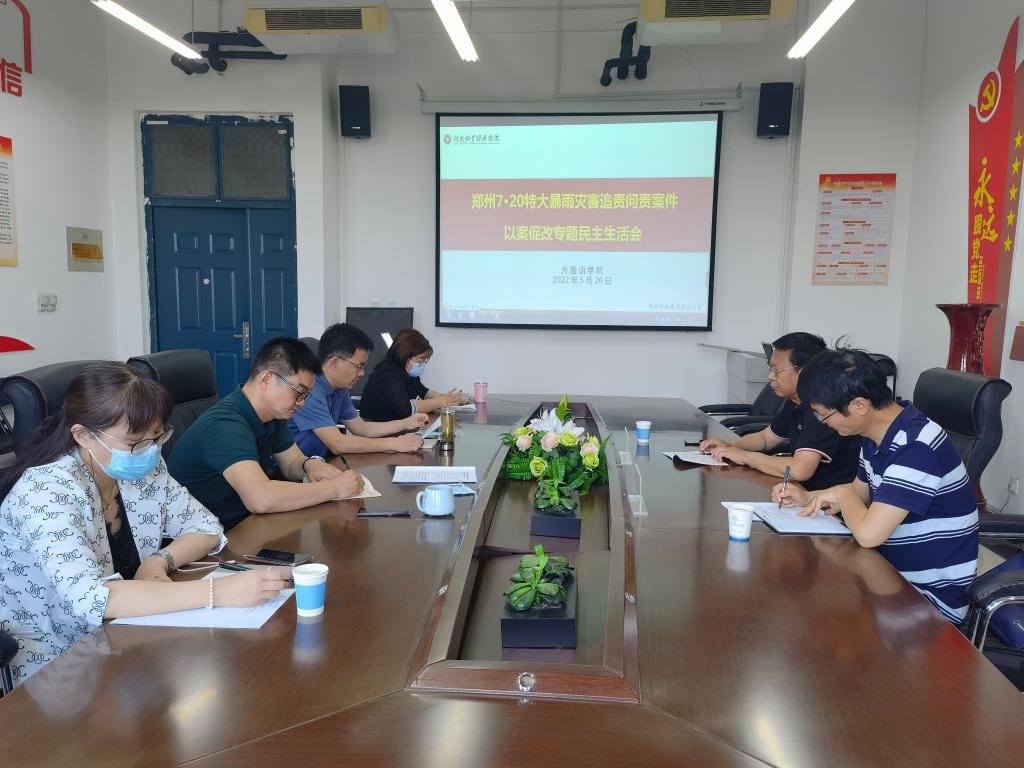 根据校党委下发的《关于深刻汲取“7.20” 特大暴雨灾害追责问责案件教训开展以案促改专题民主生活会的通知》文件精神和校纪委统一安排部署,5月26日上午,ok138cn太阳集团古天乐党委召开“7·20”特大暴雨灾害追责问责案件以案促改专题民主生活会。校纪委巡察组组长齐玉民、校纪委第三纪检监察室主任袁凤友列席指导。学院领导班子成员参加会议,会议由院党委书记胡先锋主持。