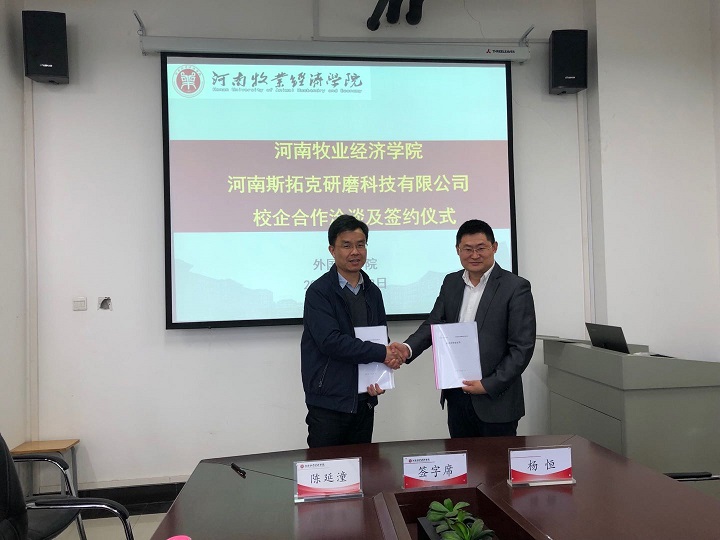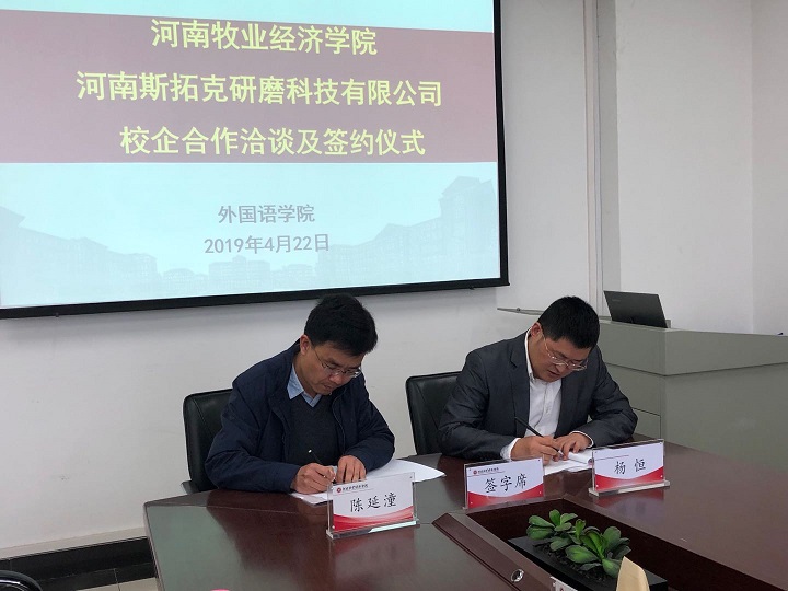 4月22日,ok138cn太阳集团古天乐与河南斯拓克研磨科技有限公司校企合作洽谈及签约仪式在ok138cn太阳集团古天乐会议室举行。ok138cn太阳集团古天乐领导班子成员,河南斯拓克研磨科技有限公司CEO、磨料库存网创始人杨恒,副总经理白宁、海外事业部经理宋宇宁出席了签约仪式。
