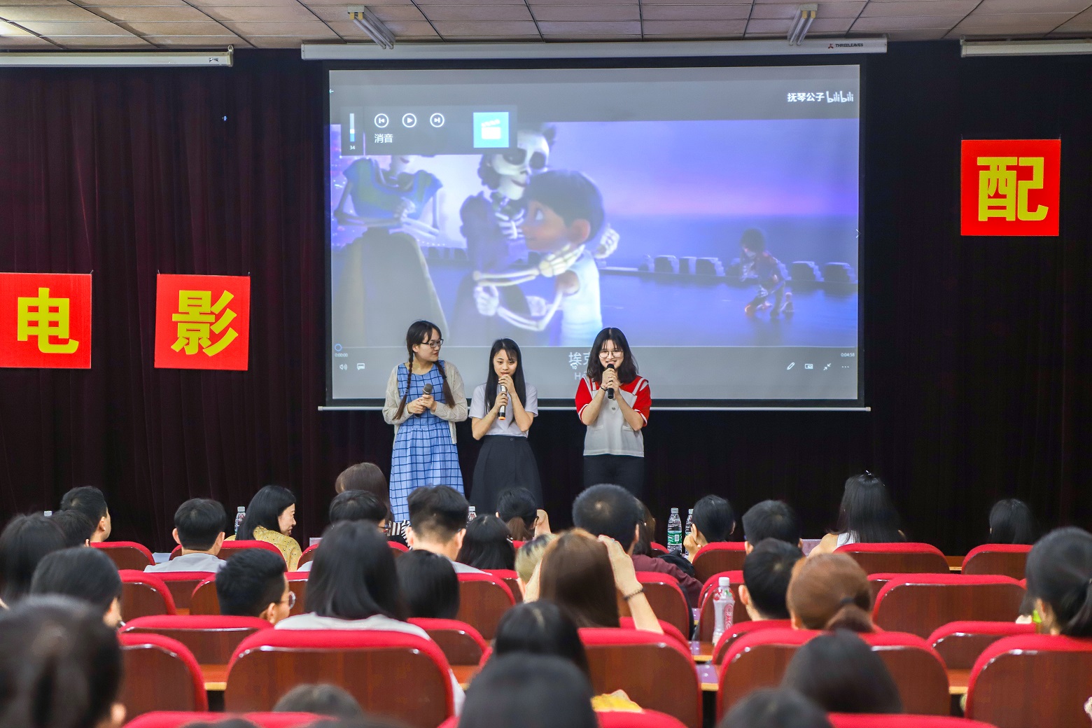 英语电影配音比赛是我校2019年外语文化月活动的内容之一,要求学生以经典英语电影为基础,按照电影片段进行演绎,通过配音表演将课堂教学与实践活动有效进行结合,旨在提升课堂教学的实效性和趣味性,同时促进学生的英语语言综合运用能力。