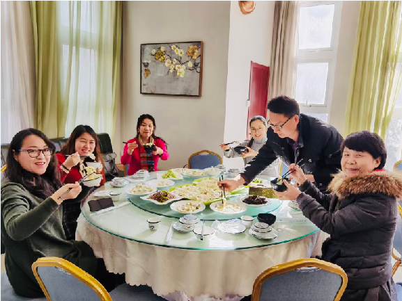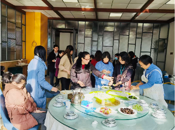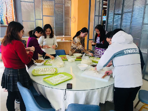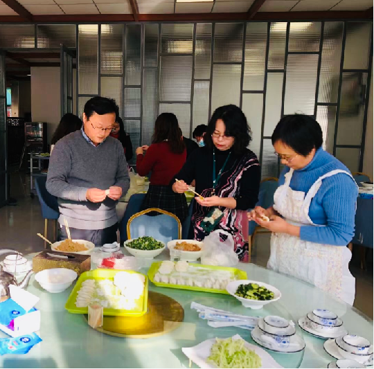 冬至大如年,按照中国传统习俗,当天要吃饺子。为了让教职工和外籍教师在工作之余,体验传统节日文化的魅力和快乐,我院分工会提前为大家准备了充足的馅料,还有美味可口的凉拌菜,现场还准备了擀面杖、案板、刀等工具。大家一边擀片、包饺子、煮饺子,一边聊着冬至的故事、成长的故事、家乡的故事。一个个饺子的制作诞生过程中,也是大家共同对过去幸福的追忆、对现在幸福的感叹、更有对未来幸福的希冀的过程,大家的心拉的更近了,对ok138cn太阳集团古天乐大家庭的感情更深了。