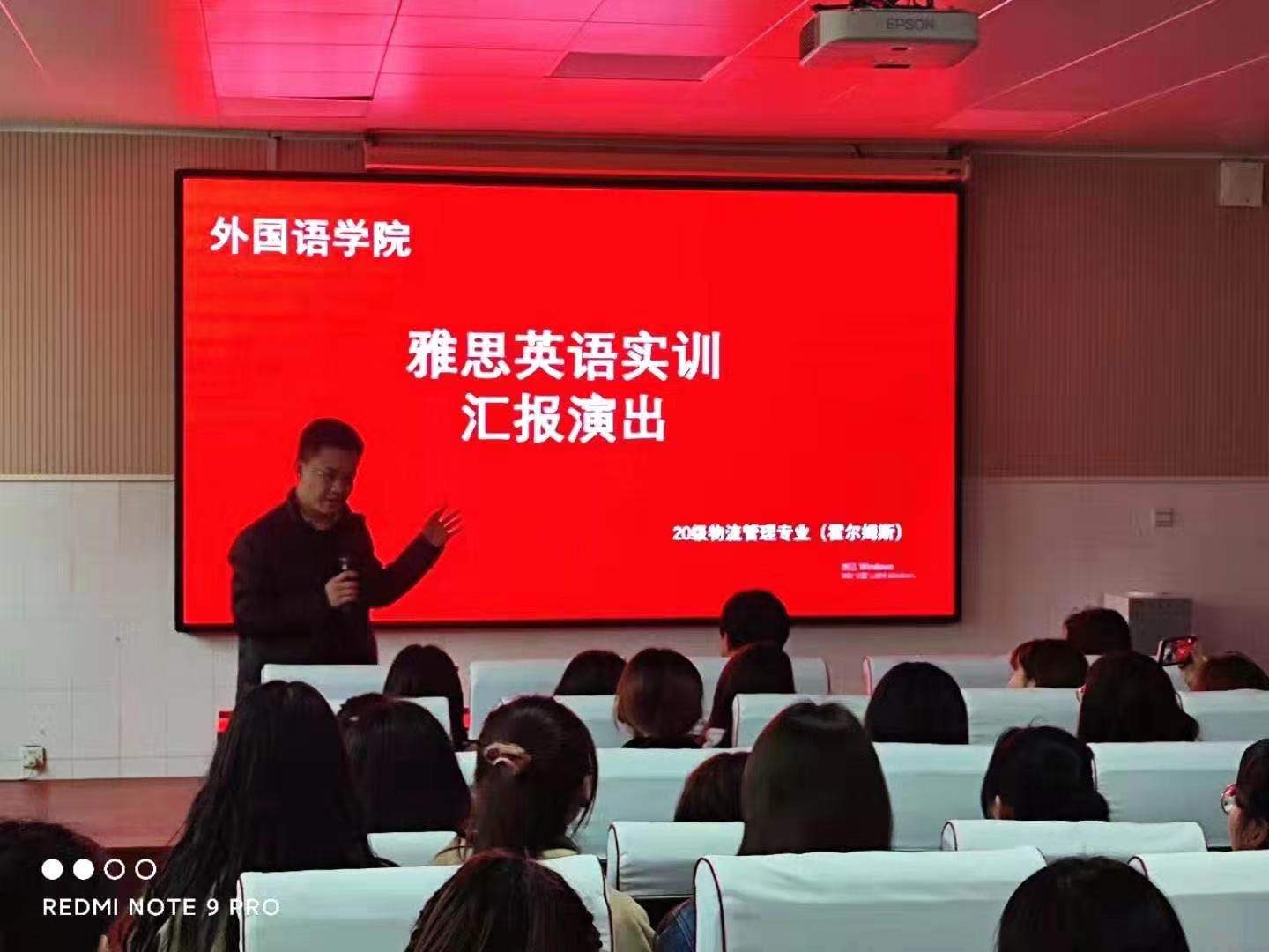 为激发学生英语学习兴趣、提升英语应用能力,近日ok138cn太阳集团古天乐联合物流与电商学院、国际教育学院对20级国际物流(霍尔姆斯)两个班的全体同学开展了为期一周的雅思英语实训。并在此基础上,精心组织了实训汇报展示。