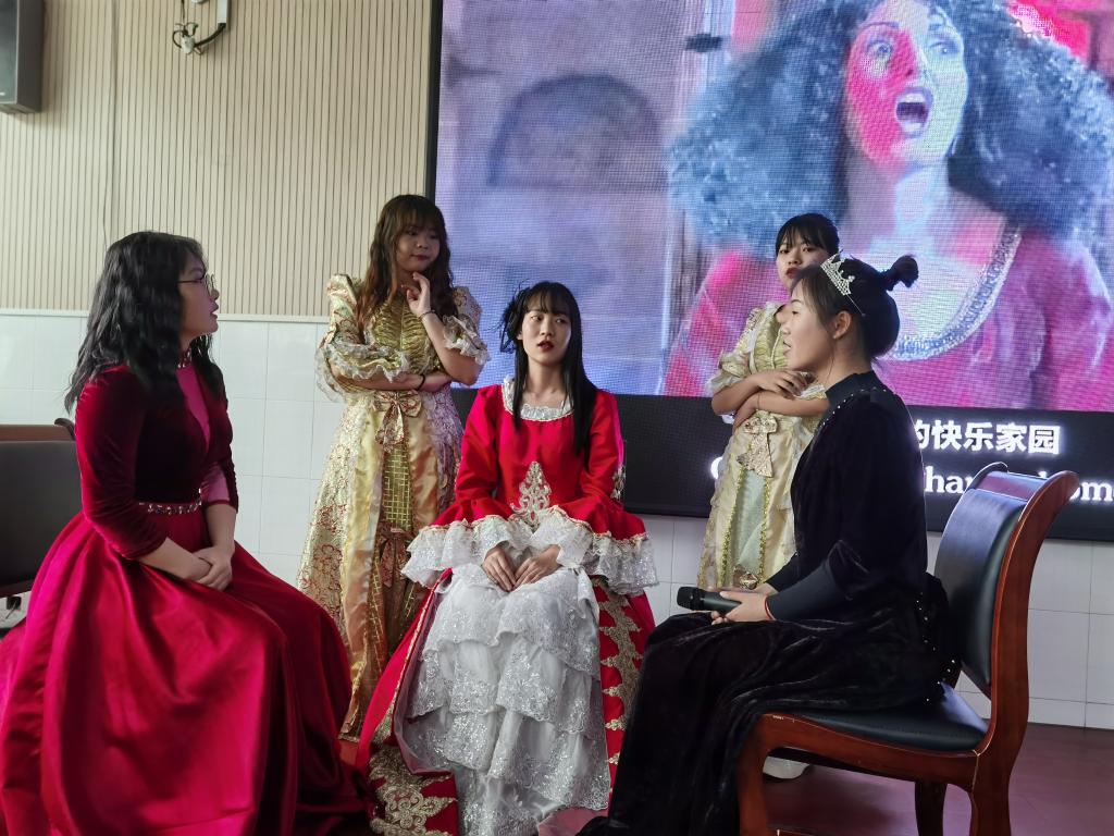 ok138cn太阳集团古天乐高度重视此次实训工作,多次召开会议研究实训方案,抽调骨干教师对学生实训工作进行指导。四位指导教师结合学生特点设计了英语语音夯基础、英文歌曲培兴趣、电影配音提实效和“美丽河南”悟文化几个项目。老师们合理分工、各司其职,以小组为单位对学生进行指导。在做好实训、提升学生能力的同时,为检验实训效果,指导老师们还精心编排了实训汇报展示。