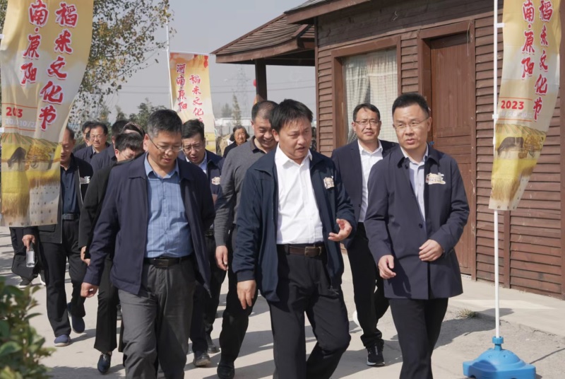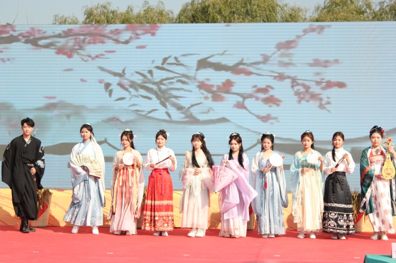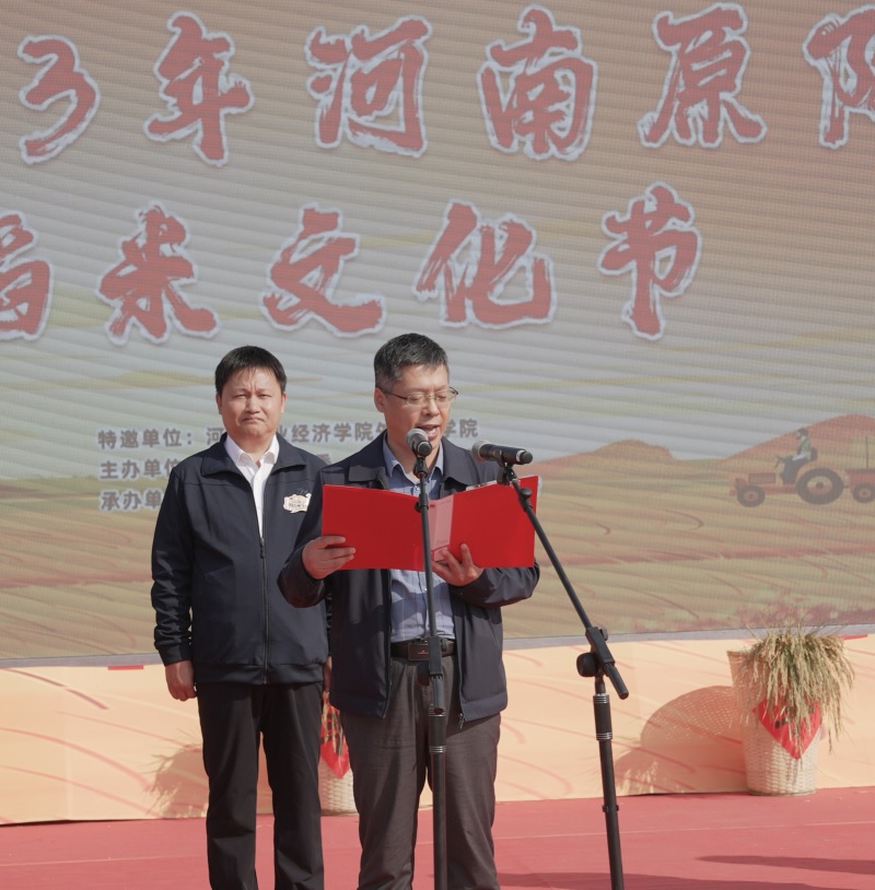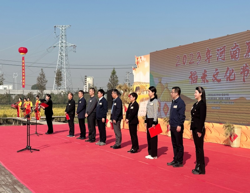 原阳县委副书记杨冬军宣布“2023年河南原阳稻米文化节”开幕。胡华峰在开幕式上代表学校致辞。文艺演出在太平镇盘鼓表演《龙鼓齐鸣》震撼人心的旋律中拉开帷幕,接着由学院师生精心编排的汉服走秀《汉风雅韵》、语言节目《“稻”亦有道》、歌曲《稻香》、茶艺表演《茶韵生香》、歌舞《最炫民族风》等节目一一亮相,博得现场阵阵掌声,最后的大合唱《歌唱祖国》更是将现场气氛推向了高潮。开幕式后,当地组织大米品鉴签约会,与会领导嘉宾一同到原阳农产品展区参观指导。