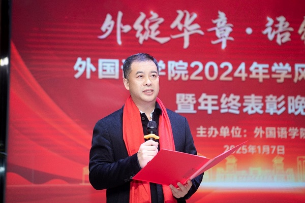 学院党委书记王友峰代表学院党委向取得优异成绩、受到表彰的集体和个人表示祝贺,向长期以来辛勤耕耘、热切关心的师生和校友表示感谢。他指出,2024年,学院在校党委、校行政的正确领导下,推动学院高质量发展,学生管理工作和学风建设井然有序,硕果累累。多名师生荣获省级和校级荣誉。王友峰提出三点希望,一是要培养理想信念,强化思想引领;二是要珍惜宝贵的大学时光,保持对知识的渴望;三是要善于学习,培养高尚情操。