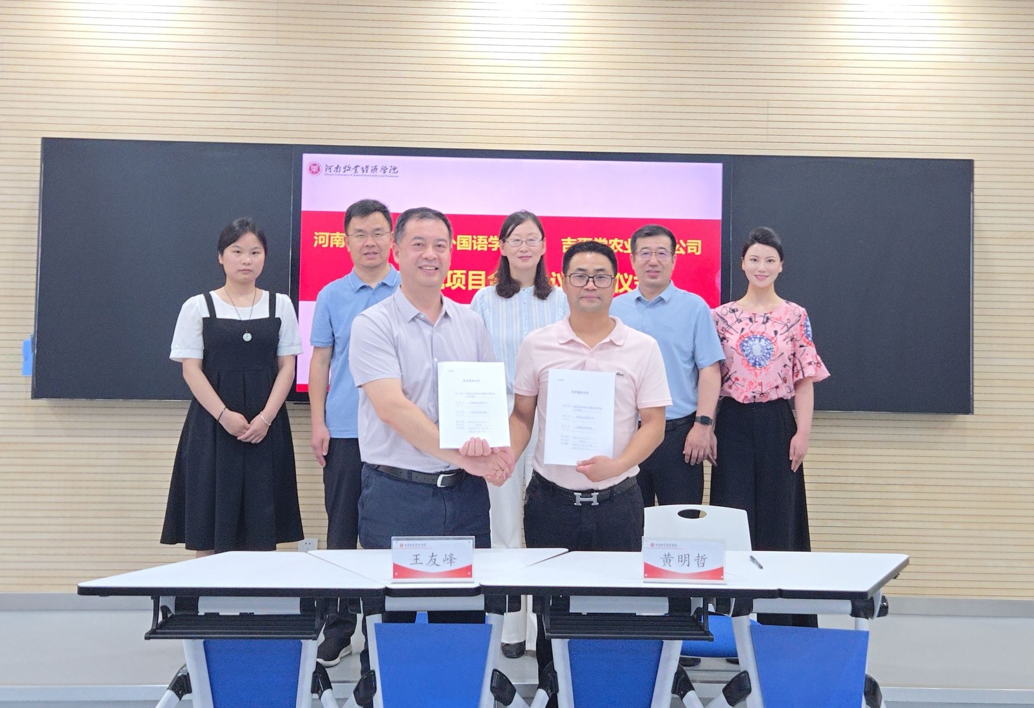 期间,王友峰与黄明哲分别代表双方签署横向课题项目合作协议。
